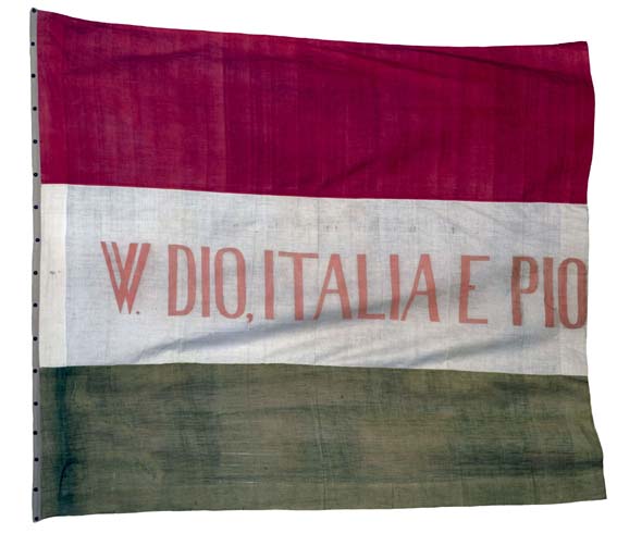 Bandiera "W. Dio, Italia e Pio" usata dagli insorti milanesi nelle Cinque giornate del 1848
